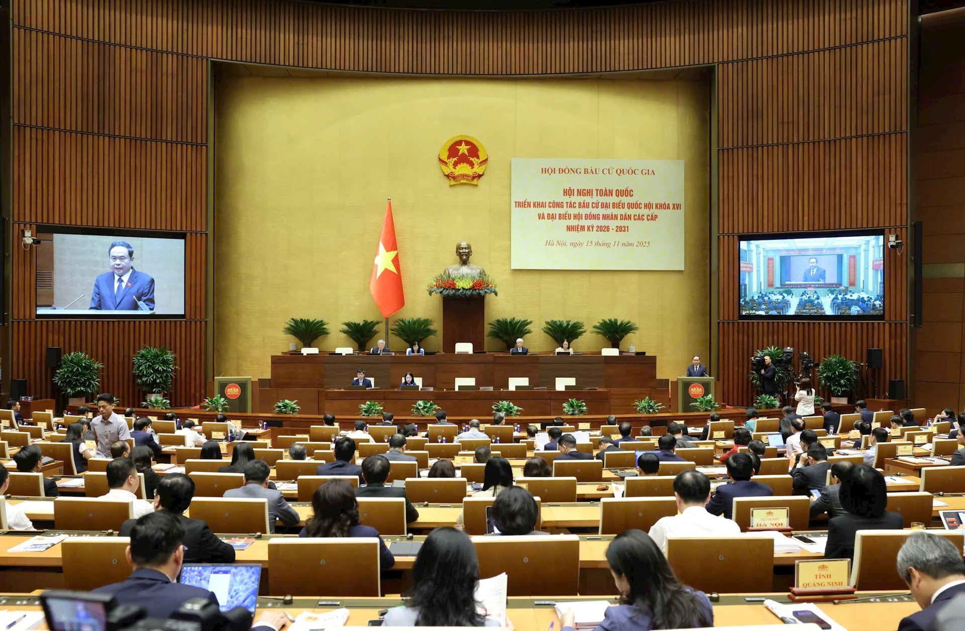 Sáng 15-11, tại Nhà Quốc hội, Hội đồng Bầu cử quốc gia tổ chức Hội nghị toàn quốc quán triệt Chỉ thị của Bộ Chính trị, triển khai công tác bầu cử đại biểu Quốc hội khóa XVI và đại biểu HĐND các cấp nhiệm kỳ 2026-2031.