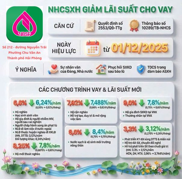 Ngân hàng Chính sách Xã hội giảm lãi suất cho vay các chương trình tín dụng chính sách từ ngày 1/12/2025