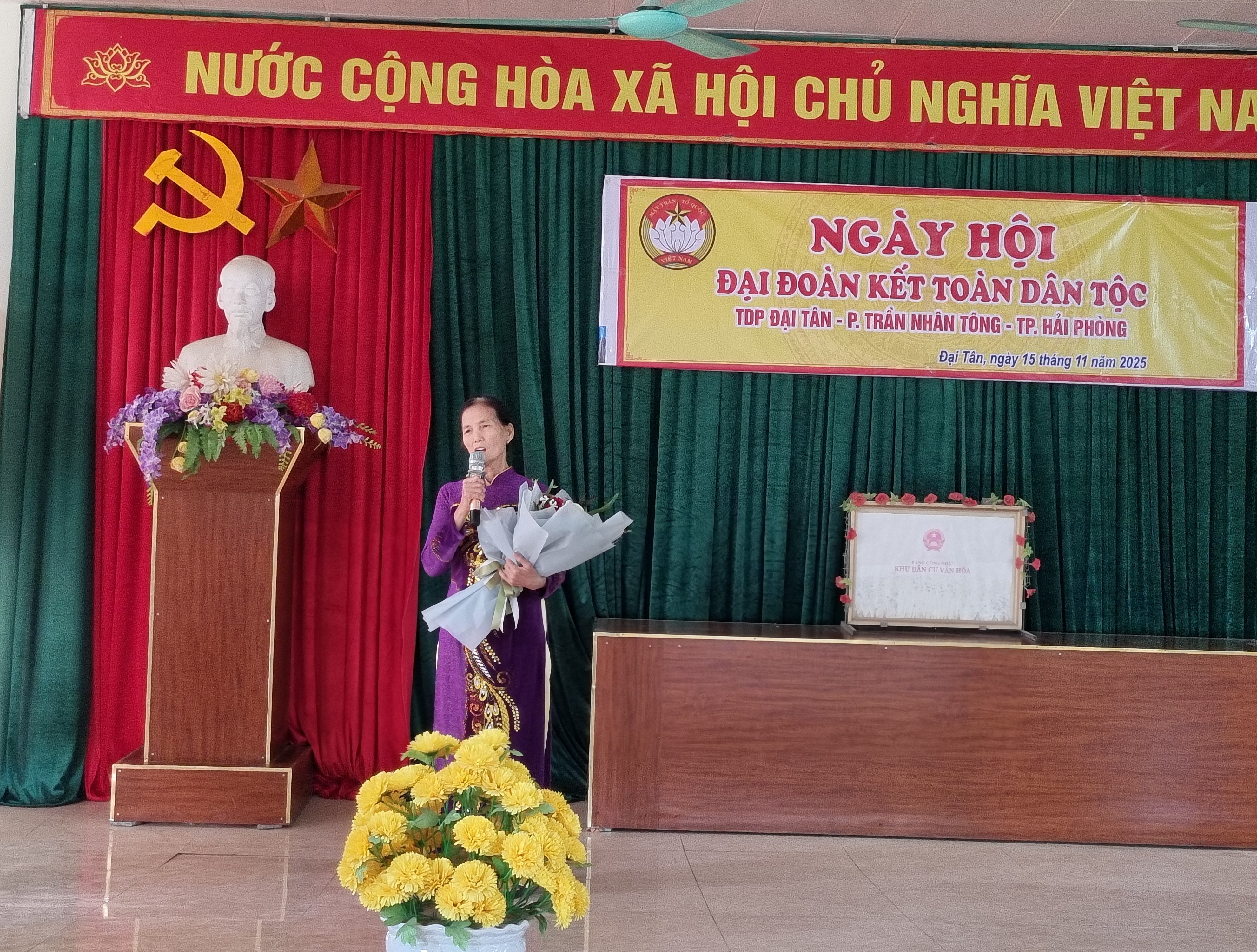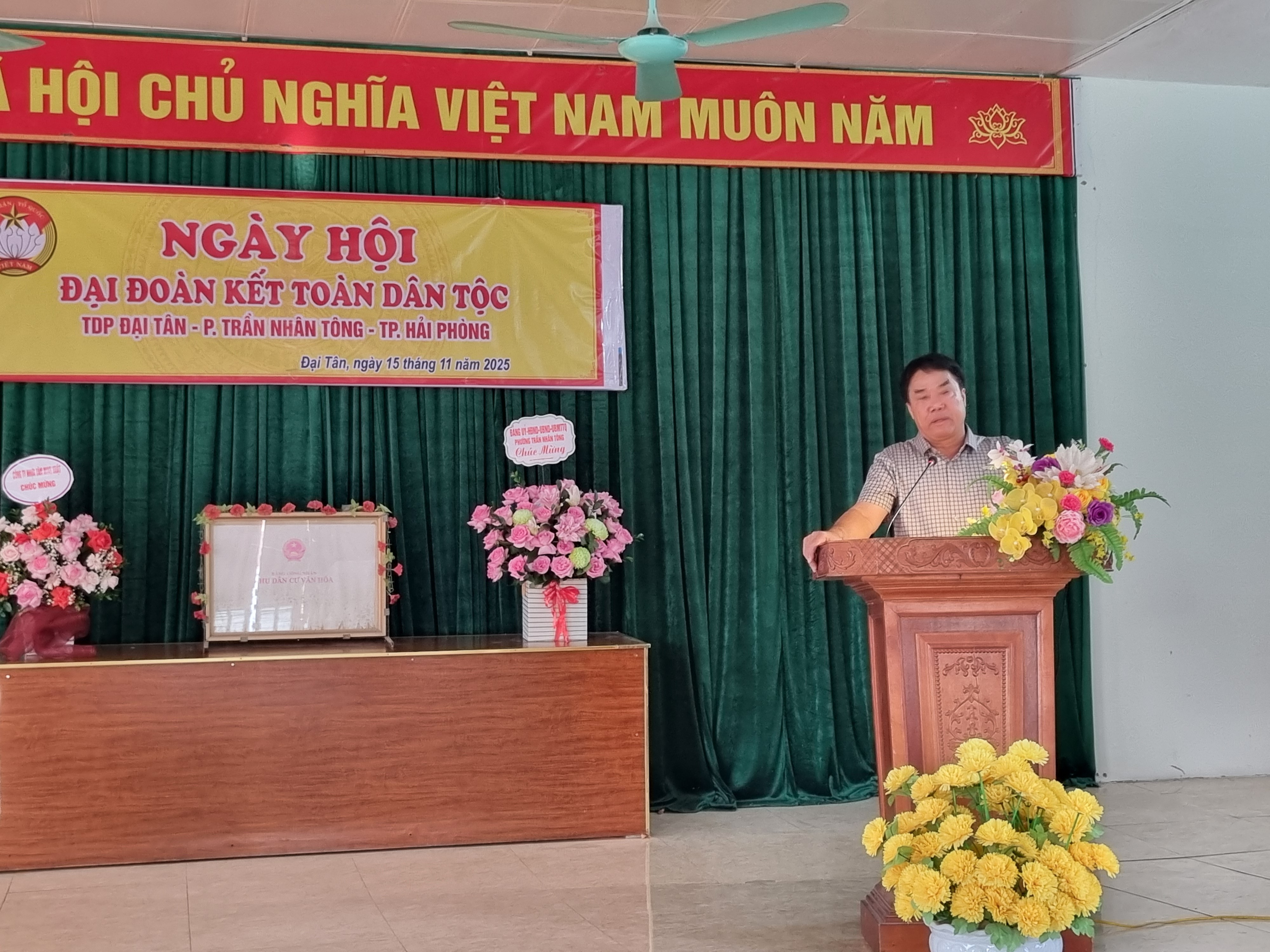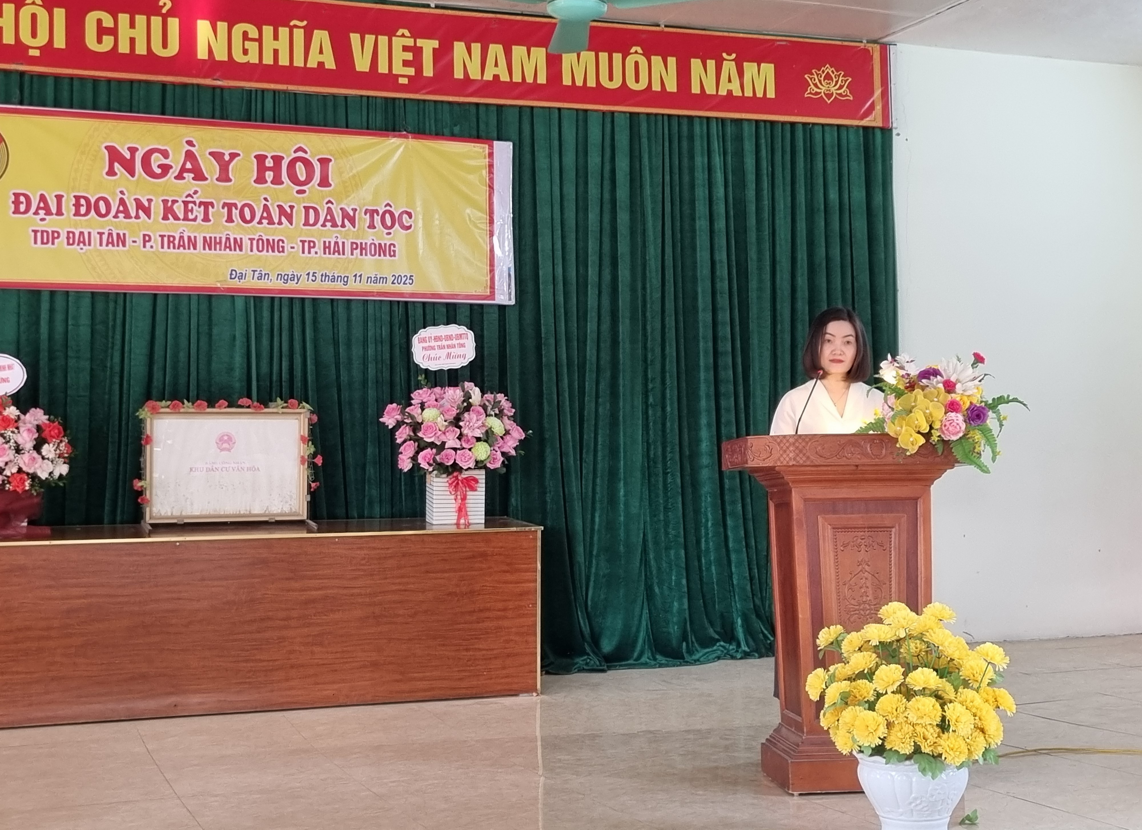 Đồng chí Đỗ Thị Tâm, Phó Chủ tịch UBND phường, thay mặt Đảng ủy - HĐND - UBND - UB MTTQ VN phường, ghi nhận những cố gắng và kết quả mà tổ dân phố Đại Tân đã đạt được trong thời gian qua, đồng thời kỳ vọng trong thời gian tới, tổ dân phố sẽ tiếp tục tích cực, sáng tạo và phát huy nội lực của người dân, cộng đồng dân cư, góp phần thực hiện nhiệm vụ phát triển kinh tế - xã hội, giữ vững an ninh trật tự ở địa bàn phường; khơi dậy truyền thống đoàn kết trong các tầng lớp nhân dân, tăng cường củng cố và mở rộng khối đại đoàn kết dân tộc; phát huy quyền dân chủ trực tiếp của nhân dân thông qua hình thức tự quản ở cơ sở, tích cực xây dựng hệ thống chính trị trong sạch vững mạnh.