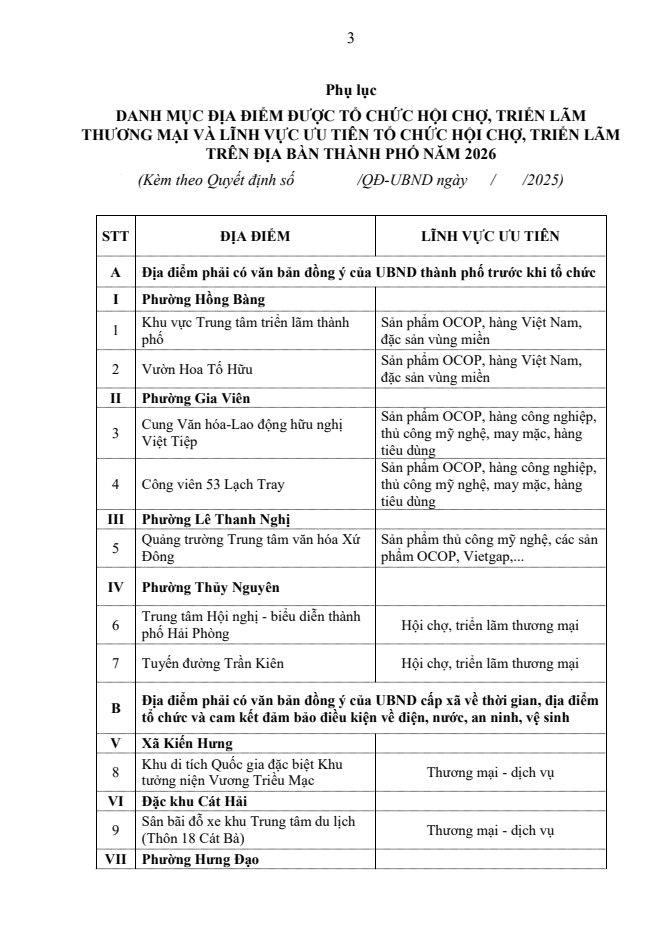 Công bố Danh mục địa điểm được tổ chức hội chợ, triển lãm thương mại và lĩnh vực ưu tiên được tổ chức hội chợ, triển lãm trên địa bàn thành phố năm 2026