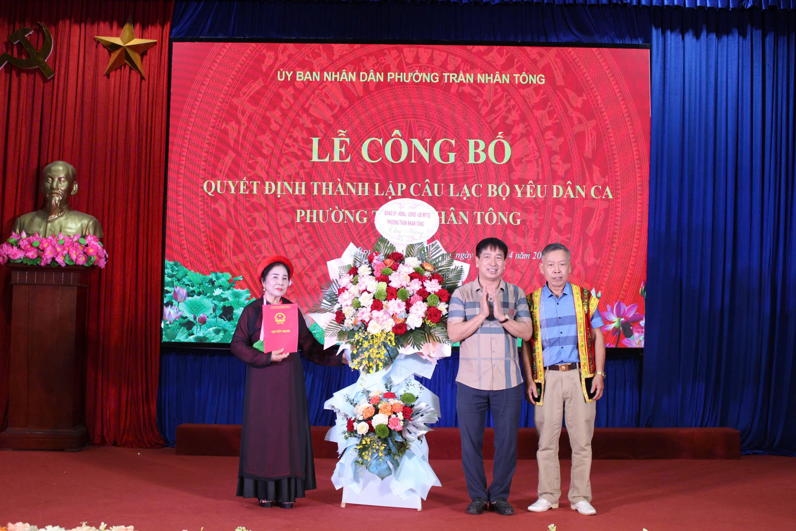 Tại buổi lễ, Ban tổ chức đã công bố Quyết định số 457/QĐ-UBND ngày 23/3/2026 về thành lập Câu lạc bộ Yêu dân ca phường Trần Nhân Tông, đồng thời ra mắt Ban chủ nhiệm CLB và thông qua phương hướng hoạt động trong thời gian tới. CLB hiện có 11 thành viên hoạt động chính thức, sự ra đời của CLB nhằm bảo tồn, phát huy các giá trị văn hóa truyền thống của quê hương, tạo sân chơi lành mạnh, bổ ích cho nhân dân, đặc biệt là những người yêu thích các làn điệu dân ca, góp phần làm phong phú đời sống văn hóa tinh thần của nhân dân, đồng thời cụ thể hóa việc triển khai các chủ trương, nghị quyết của Đảng về xây dựng và phát triển nền văn hóa Việt Nam tiên tiến, đậm đà bản sắc dân tộc.