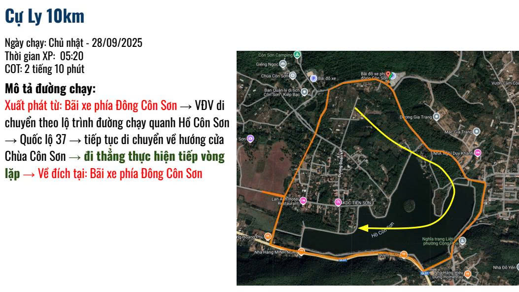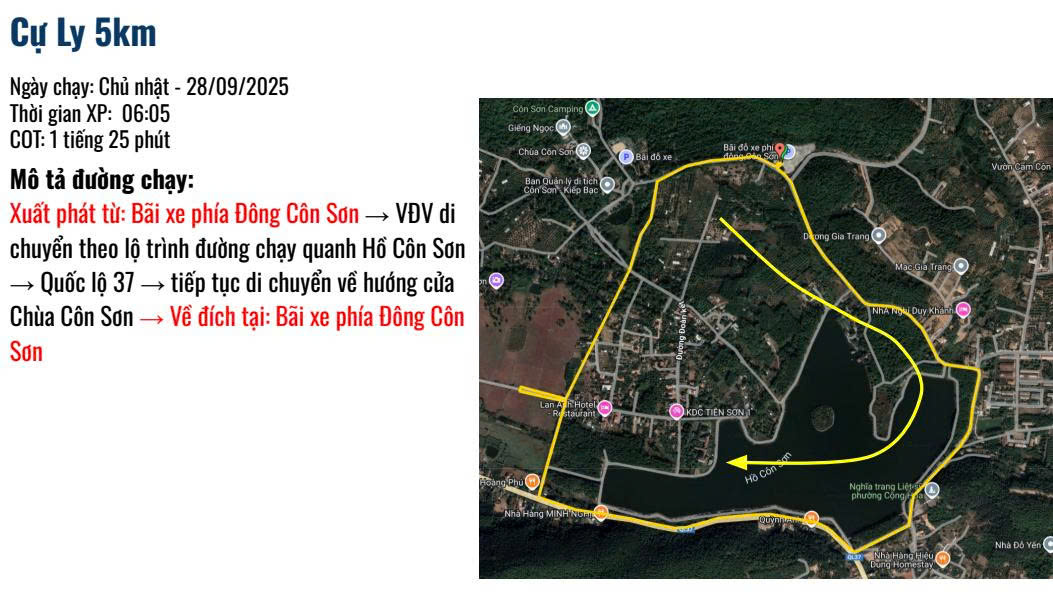 Tuyến đường chạy: Đường cung đường chạy quanh Hồ Côn Sơn, phường Trần Hưng Đạo, thành phố Hải Phòng.