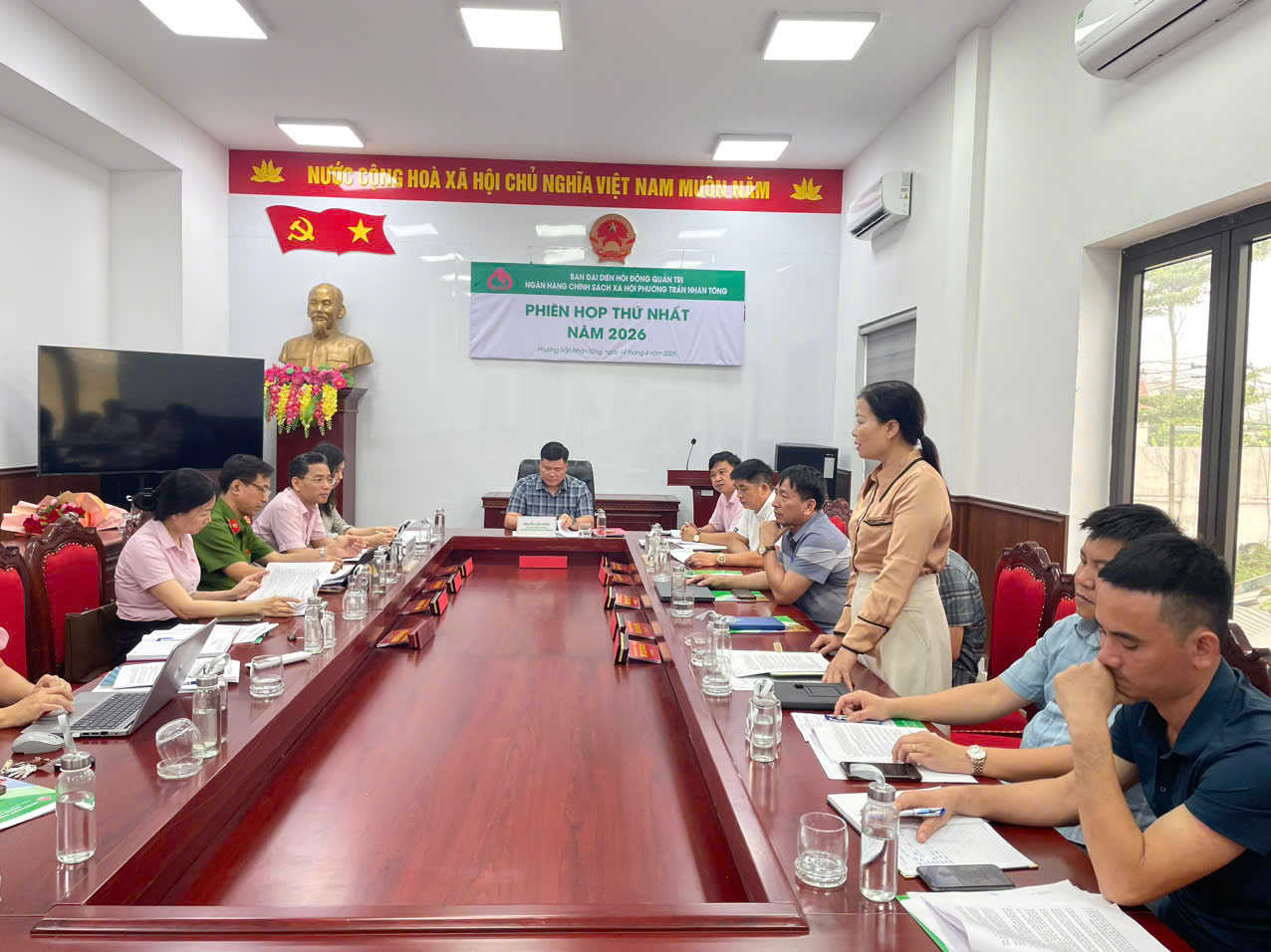 Ngày 14/4, UBND phường Trần Nhân Tông phối hợp với Ngân hàng Chính sách xã hội (NHCSXH) Chí Linh tổ chức Hội nghị công bố Quyết định thành lập Ban Đại diện Hội đồng quản trị (HĐQT) NHCSXH phường và triển khai phiên họp thứ I năm 2026. Dự hội nghị có đồng chí Nguyễn Văn Hưng - Phó Bí thư Đảng ủy, Chủ tịch UBND phường; Giám đốc Phòng Giao dịch Ngân hàng CSXH Chí Linh, các đồng chí thành viên Ban đại diện HĐQT Ngân hàng CSXH phường; đại diện các tổ chức chính trị - xã hội nhận ủy thác và các phòng ban có liên quan.