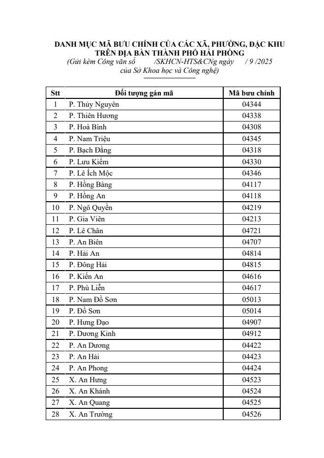 Ngày 11/9/2025, Sở Khoa học và Công nghệ thành phố Hải Phòng đã có văn bản hướng dẫn và công bố danh mục Mã bưu chính của các xã, phường, đặc khu trên địa bàn thành phố Hải Phòng, trong đó Mã bưu chính của phường Trần Nhân Tông là 03530