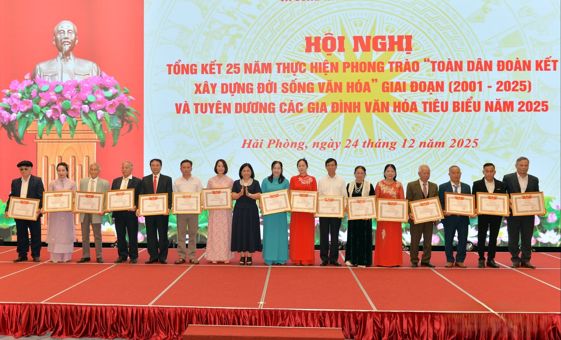Sáng 24/12, tại Trung tâm Hội nghị - Biểu diễn thành phố, Ban Chỉ đạo phong trào “Toàn dân đoàn kết xây dựng đời sống văn hóa và công tác gia đình” thành phố tổng kết 25 năm thực hiện phong trào “Toàn dân đoàn kết xây dựng đời sống văn hóa” (2001 - 2025); tuyên dương 114 gia đình văn hóa tiêu biểu năm 2025.